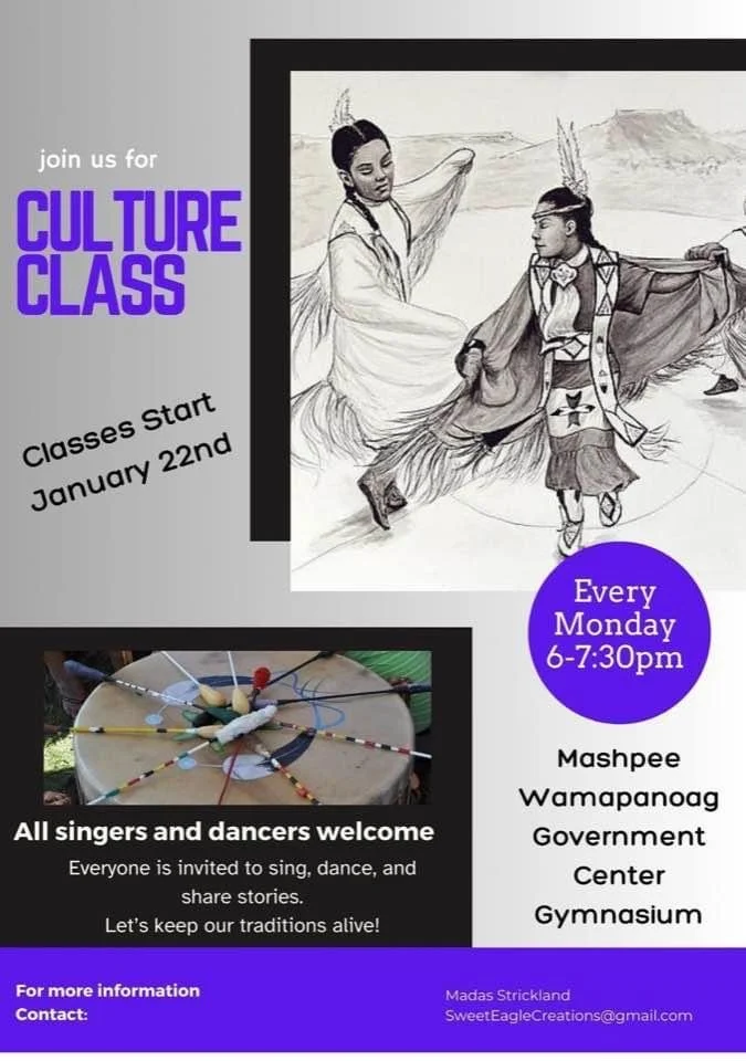 Culture classes are being held at the Community and Government Center every Monday from 6:00 PM – 7:30 PM. All tribal members are invited to participate in singing, dancing, and storytelling. For more information, please contact Madas Strickland at sweeteaglecreations@gmail.com