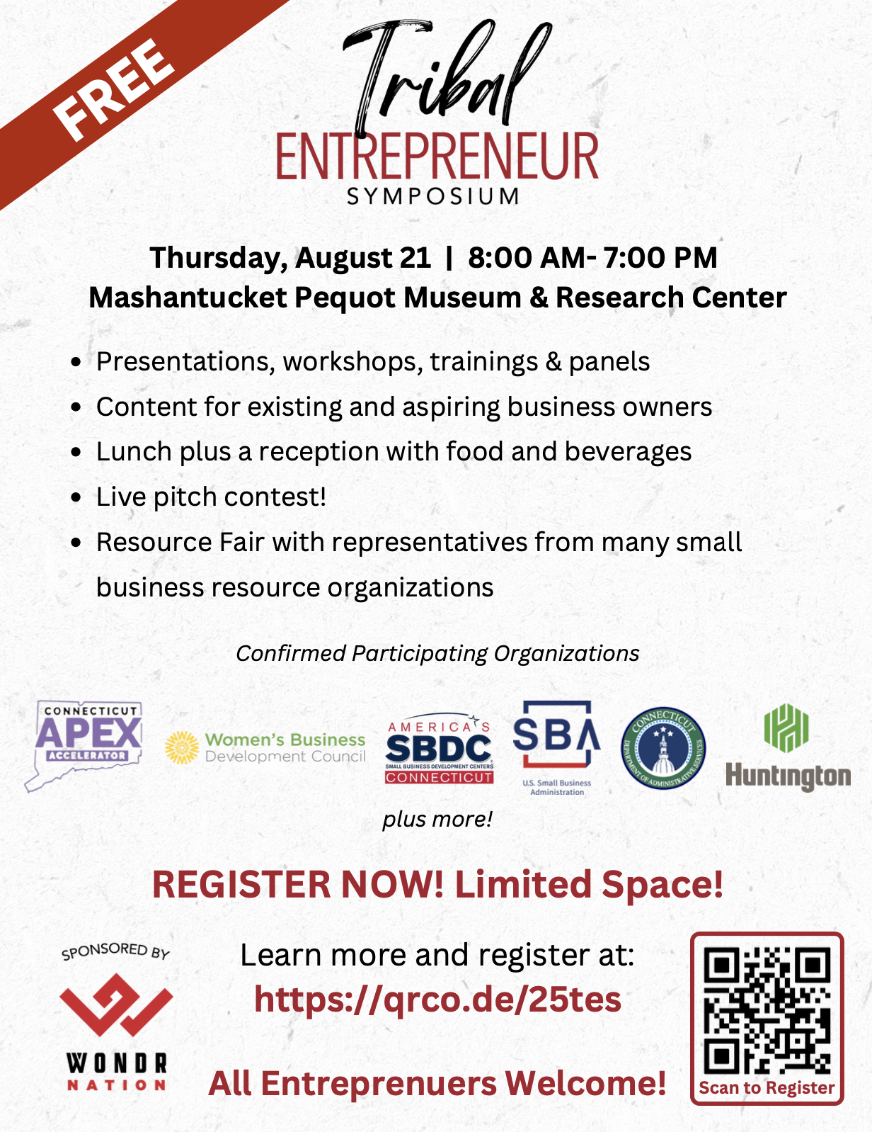 Wondr Nation will be hosting a 2025 Tribal Entrepreneur Symposium on Thursday, August 21st at the Mashantucket Pequot Museum.