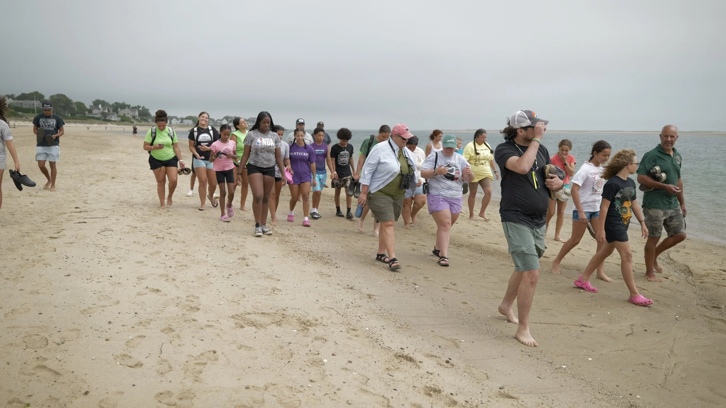 On day two, the camp traveled to Lighthouse Beach in Chatham, MA. Here, students learned about the ecological significance of the shifting sands, tidal currents, and shellfish habitats, while also hearing about the deep cultural history of this place for the Wampanoag people. Guided by Culture Keeper Brad Lopes, youth reflected on responsible harvesting, Aboriginal rights, and how listening to the land and water teaches us how to care for them.
