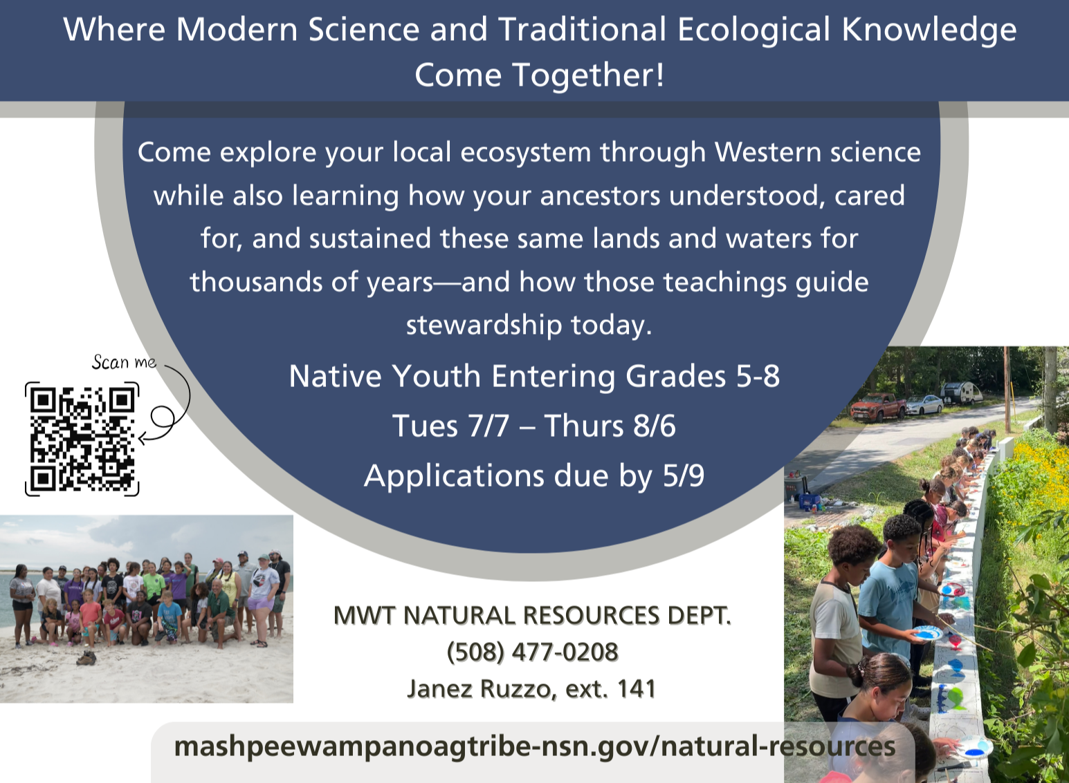 The Mashpee Wampanoag Tribe Natural Resources Department is now accepting applications for POH 2026, a summer program for Native youth entering grades 5–8. This unique camp brings together modern science and Traditional Ecological Knowledge, giving youth the opportunity to explore the local ecosystem while learning how our ancestors understood, cared for, and sustained these same lands and waters for generations.