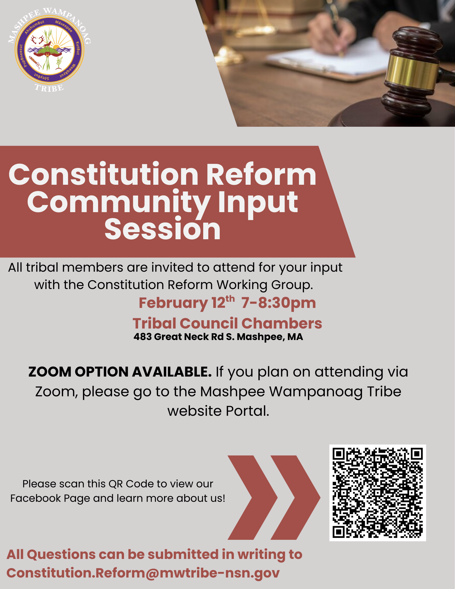 Members who are unable to attend are welcome to submit questions or written comments by email to Constitution.Reform@mwtribe-nsn.gov.